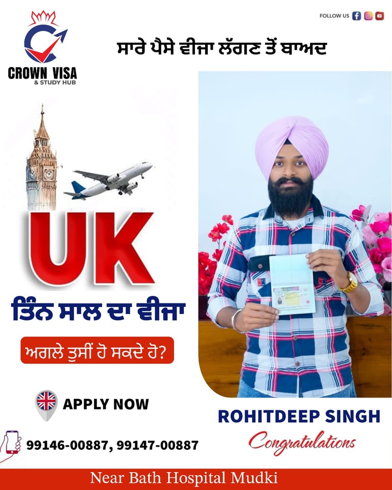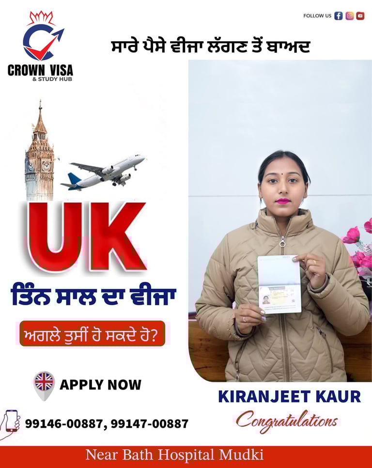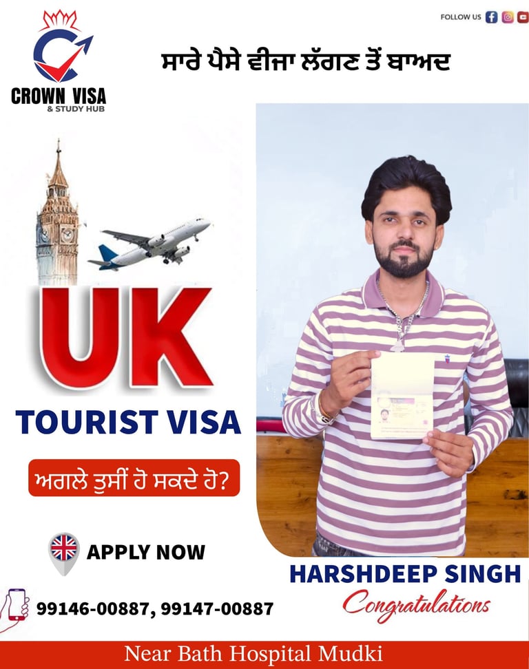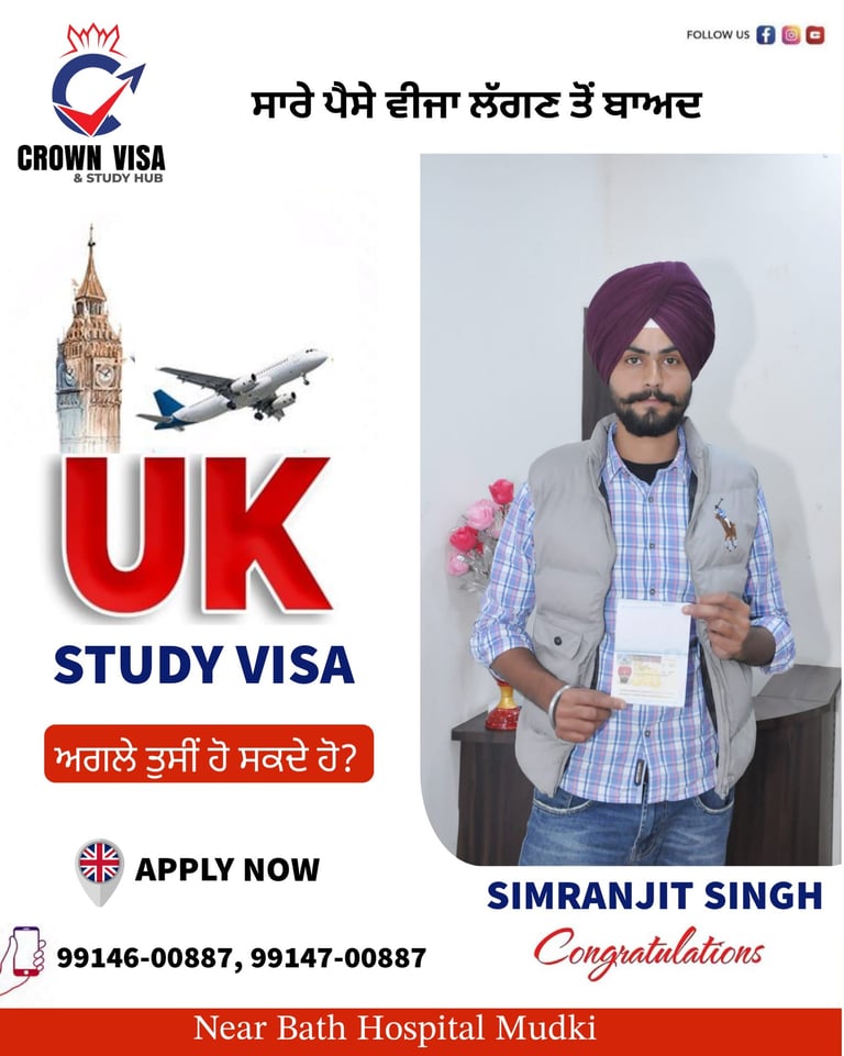 At Crown Visa Study Hub, our biggest achievement is the success of our students. Every approval you see here represents a dream fulfilled and a future started abroad. We have proudly helped students secure Study Visas, Tourist Visas, and Work Permits for countries like Canada, UK, Australia, and Europe.